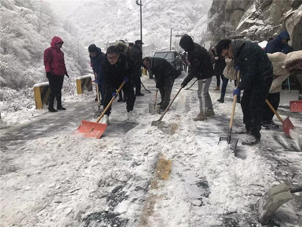 1月29日至31日,華山景區(qū)迎來(lái)降雪天氣,華旅集團(tuán)各單位迅速組織工作人員對(duì)路面冰雪進(jìn)行了清理,24小時(shí)不間斷地進(jìn)行掃雪除冰和應(yīng)急值守工作,有效降低了雨雪天氣對(duì)景區(qū)旅游秩序的不利影響。