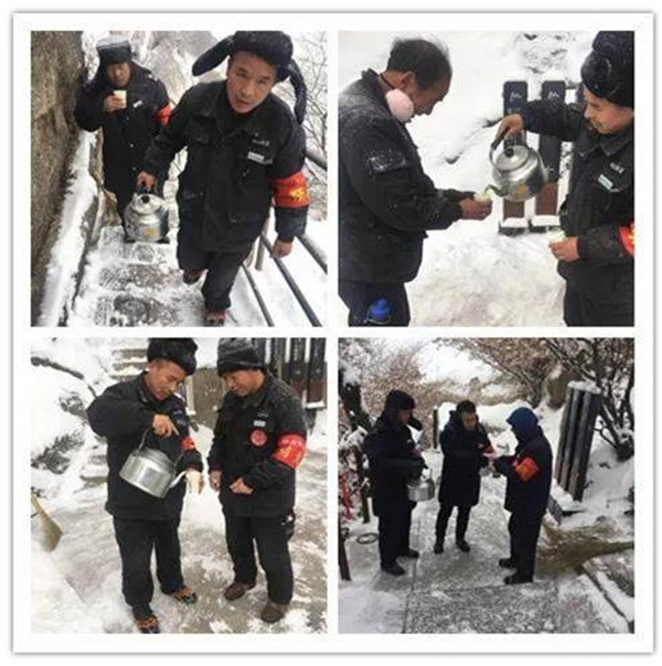 他們彼此照料、相互取暖,他們不辭辛苦,為掃雪的兄弟們遞上一杯杯溫暖的姜湯。最美的不是下雪天,是和你一起不畏嚴寒的奮戰(zhàn)。