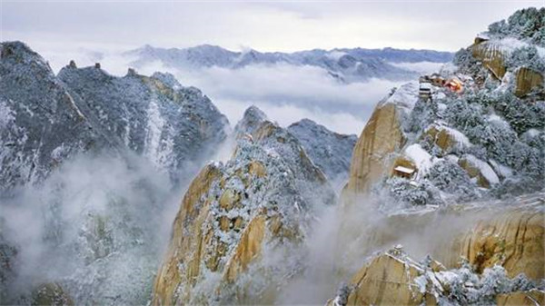 一場(chǎng)大雪將西岳華山變成白雪皚皚的世界,白雪與蒼翠的華山奇松、靈動(dòng)的云海交相輝映,如夢(mèng)如幻;滿山遍野玉樹瓊花,樹枝上通體的霧凇晶瑩剔透,繪就冬日畫境,美不勝收,游人如置身人間仙境。