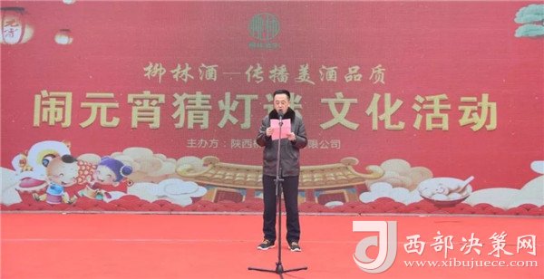 陜西柳林酒業(yè)有限公司副總經(jīng)理周峰發(fā)表講話并向鳳翔父老送上新春祝福和節(jié)日的問候。“三陽開國(guó)泰,美哉柳林酒。今天是正月十五,首先我代表柳林酒業(yè)董事長(zhǎng)付小銅先生、總經(jīng)理柳林先生及全體員工給現(xiàn)場(chǎng)的父老鄉(xiāng)親、朋友們拜個(gè)晚年,祝各位家庭好、事業(yè)好、身體好心情好、運(yùn)氣好、福氣好、財(cái)氣好、愛情好、朋友好、新的一年一切都好!柳林酒業(yè)主辦的以傳播柳林美酒品質(zhì)為主題的“鬧元宵有獎(jiǎng)猜燈謎文化活動(dòng)”,在此,對(duì)前來的各位父老鄉(xiāng)親,各界朋友表示衷心的感謝。本次猜謎活動(dòng)獎(jiǎng)品總價(jià)值15萬元,共設(shè)1000條謎語,只要猜中謎底,關(guān)注“柳林酒業(yè)”,即可獲得獎(jiǎng)品。現(xiàn)場(chǎng)更有國(guó)家級(jí)評(píng)酒大師親臨現(xiàn)場(chǎng),品柳林美酒,共同傳播美酒文化和歌舞表演環(huán)節(jié),相信大家一定會(huì)不虛此行,度過一個(gè)難忘的元宵佳節(jié)。