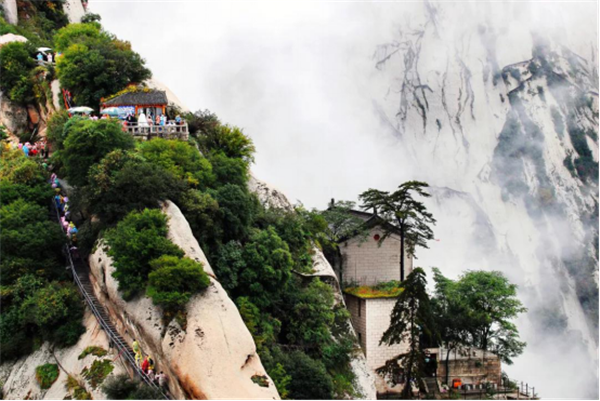 作為五岳之一,華山的巖石山峰每天都吸引著數(shù)百數(shù)千的游人。他們大多乘坐中巴,購(gòu)買(mǎi)門(mén)票(保險(xiǎn)費(fèi)自愿),由索道直達(dá)北峰。在這里你可以從這些鑿在石頭上的道路到達(dá)其他四峰。一路上有寺廟可供祈愿,在鐵鏈上系上刻好的銅鎖,雖然是一個(gè)無(wú)神論的國(guó)家,中國(guó)人卻是很迷信。