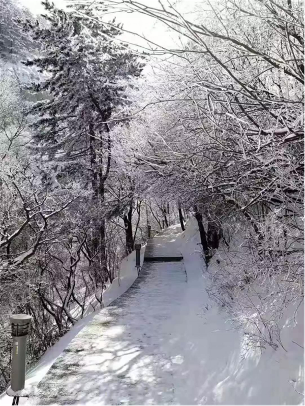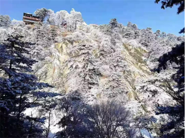 走進(jìn)雪后的華山,你會覺得自己仿佛掉進(jìn)了一個銀裝素裹的童話世界里,整個世界仿佛都被披上了一層白色婚紗。
