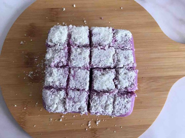 11.將做好的紫薯泥倒入碗中,抹平,入冰箱冷藏2小時