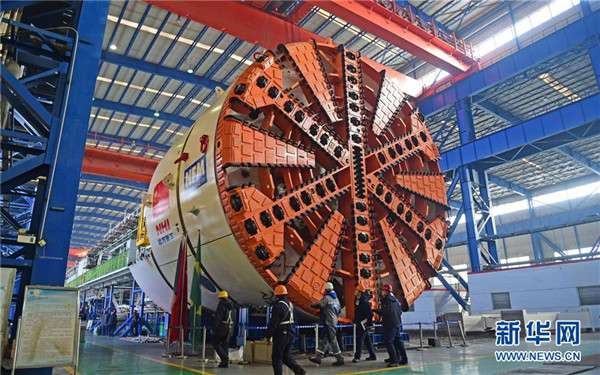 遼寧沈陽北方重工集團(tuán)工人在拆解出口到巴西圣保羅的盾構(gòu)機(jī)(2016年1月28日攝)。 新華社記者 楊青 攝