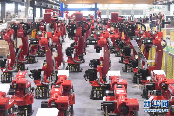 這是沈陽新松機(jī)器人公司生產(chǎn)的工業(yè)機(jī)器人(2017年6月6日攝)。 新華社記者 楊青 攝