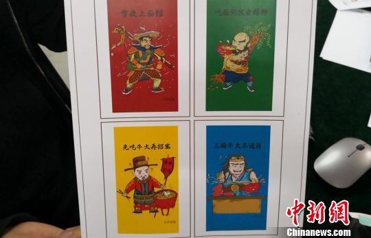 在眾多的漫畫中,有一組設計水滸英雄吃面的造型吸引眼球。漫畫中的英雄人物花樣“秀”吃面,配著“雪夜上面館”“吃面倒拔垂楊柳”“三碗牛大不過崗”等文字。