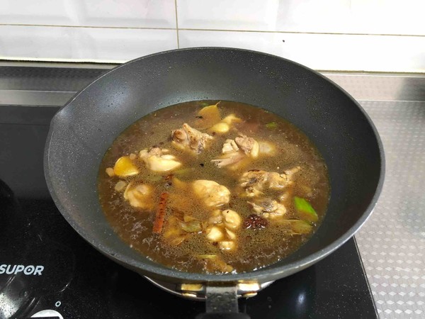 7.加入清水,沒(méi)過(guò)雞腿,開(kāi)鍋轉(zhuǎn)中小火燉20分鐘