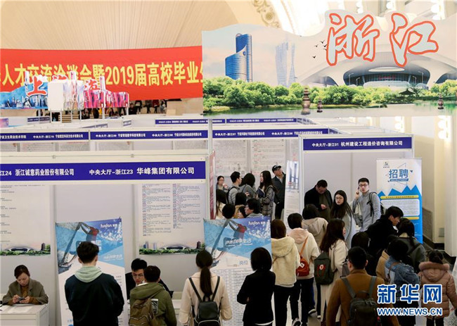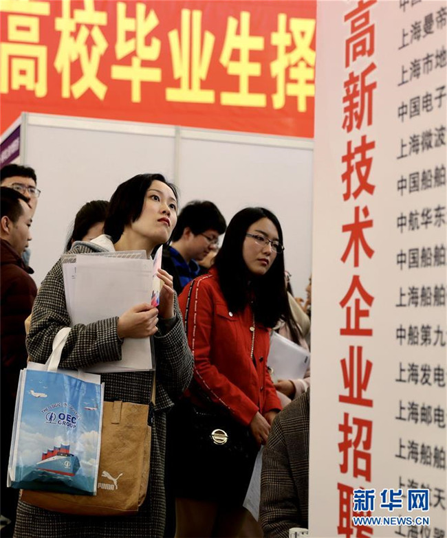3月24日,求職者在招聘會(huì)上了解崗位信息。當(dāng)日,由上海、江蘇、浙江、安徽聯(lián)合舉辦的“長三角地區(qū)春季人才交流洽談會(huì)暨2019屆高校畢業(yè)生擇業(yè)招聘會(huì)”在上海展覽中心舉行。 新華社記者 劉穎 攝
