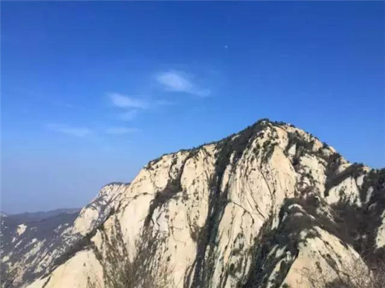 量掌山雖矮于華山主峰,但山峰險(xiǎn)峻,危崖聳立,崖體裸露呈赭色,巖石皴理異常美麗,其造化之妙如出畫(huà)家之手。尤其是在陽(yáng)光照耀下,更加燦爛輝煌,雄奇壯觀。攀登量掌山的道路非常險(xiǎn)峻,古時(shí)除一些羽林高手外,很少有人登峰。