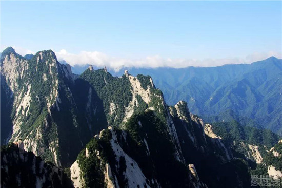 三公山在華山主峰西南,海拔2000米,與華山主峰隔壑相望。因山上三個(gè)峰頭各立一長(zhǎng)方形巨石,統(tǒng)觀其形態(tài)如三位面華山主峰而立的老人,故名。明代湖廣巡撫魏光緒《華游記》中記述,南峰絕頂,背臨絕壑,壑外有三座峰頭,與南峰等高,名三公山,三公山兩側(cè),千峰林立,如一片片青蓮花瓣,擁護(hù)圍繞著華山主峰。