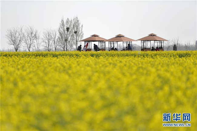 隨著氣溫回升,河北省沙河市東葛泉村3000多畝油菜花盛開。