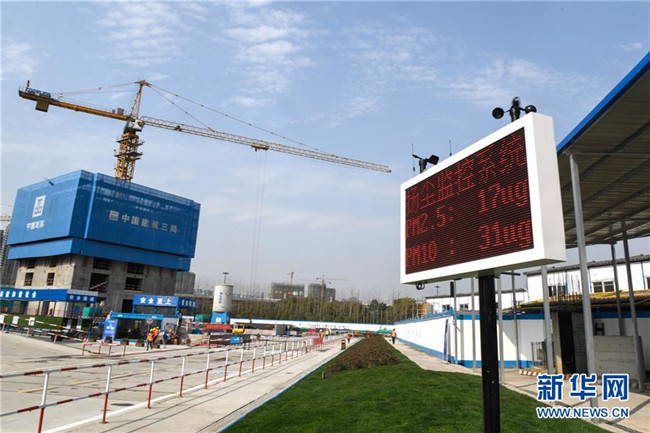 這是3月26日在“浙江智慧之門”項(xiàng)目現(xiàn)場(chǎng)拍攝的揚(yáng)塵監(jiān)控系統(tǒng)顯示屏。據(jù)了解,揚(yáng)塵超過(guò)閥值就能自動(dòng)啟動(dòng)噴淋設(shè)備,給工地降塵。新華社記者黃宗治攝