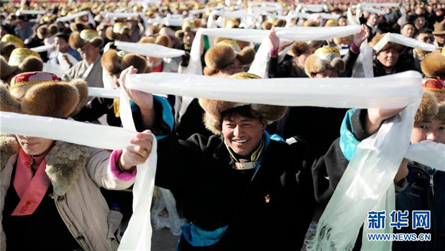 3月28日,慶祝西藏民主改革60周年大會(huì)在拉薩布達(dá)拉宮廣場(chǎng)舉行。新華社記者 李鑫 攝