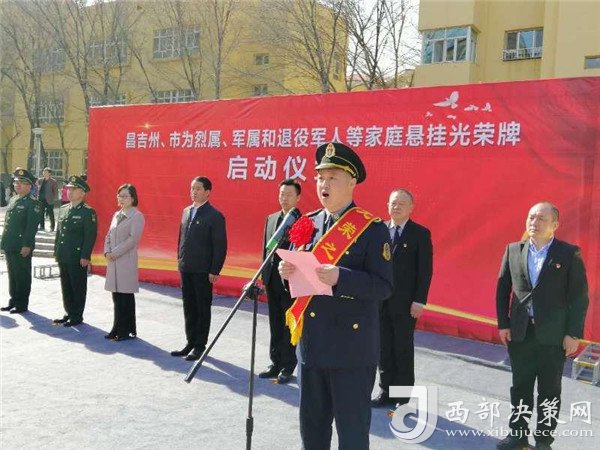 3月28日上午 ,昌吉州、市為烈屬、軍屬和退役軍人等家庭集中懸掛光榮牌啟動(dòng)儀式在昌吉北京南路街道油運(yùn)基地社區(qū)小游園舉行。 昌吉州、市領(lǐng)導(dǎo)、退役軍人事務(wù)局干部、現(xiàn)役軍人代表、烈屬、軍屬、退役軍人代表、各社區(qū)書記、訪惠聚工作隊(duì)隊(duì)長(zhǎng)、雙擁干事共計(jì)300余人參加啟動(dòng)儀式。