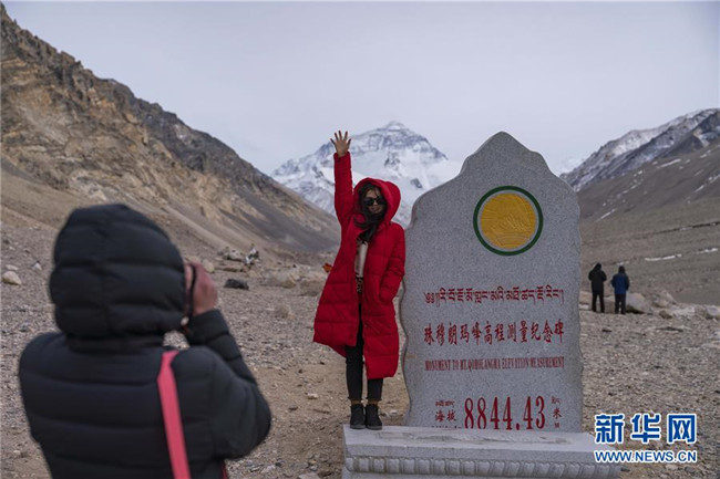 標(biāo)有“海拔8844.43米”的珠峰高程測(cè)量紀(jì)念碑已被移至絨布寺一帶,游客可前往合影。湖南游客唐鳳明告訴記者:“從這里觀(guān)賞珠峰非常壯觀(guān),超乎想象。”