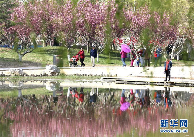 4月7日,游客在北京懷柔水長城旅游景區(qū)踏青賞花。清明時節(jié),人們外出旅游,踏青賞花,感受春天的美好。 新華社發(fā)(卜向東 攝)