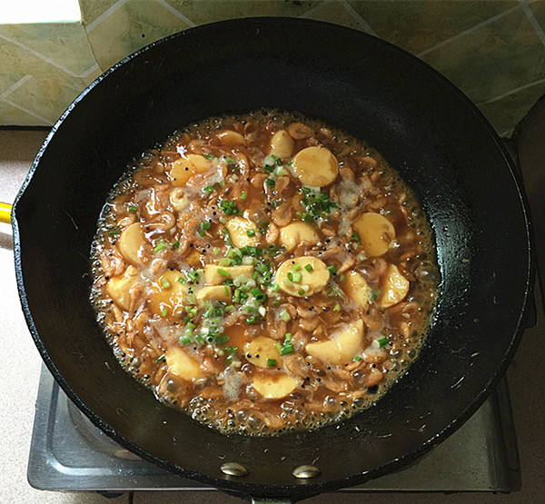 10.大火燒開(kāi)后轉(zhuǎn)中小火,燴燒約5分鐘。