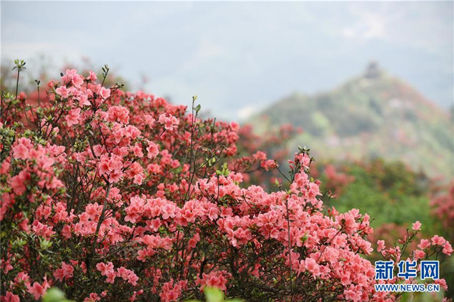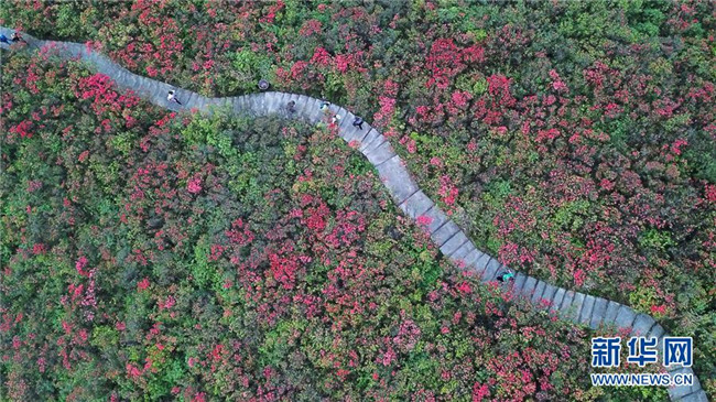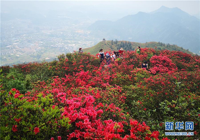 4月25日,游客在貴州省丹寨縣龍泉山景區(qū)觀賞映山紅。暮春時(shí)節(jié),位于貴州省黔東南苗族侗族自治州丹寨縣龍泉山景區(qū)的映山紅陸續(xù)開放,紅遍山嶺,吸引眾多游客前來(lái)賞花觀光。 新華社記者 楊文斌 攝