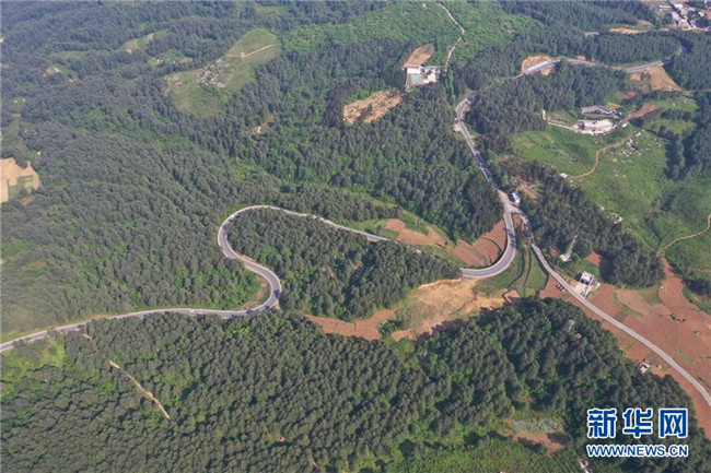 這是4月27日拍攝的貴州省畢節(jié)市赫章縣平山國有林場一角(無人機(jī)拍攝)。新華社記者 楊楹 攝
