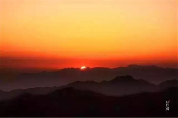 是時,但見夜幕自東方悄然隱退,晨曦初露,漸漸霞光瑰麗,云源奔涌。瞬間,一輪火球噴薄而出,繼而光芒四射,氣象萬千,整個世界大放光明,游人身心為之一振。待云霧散盡,蒼松翠柏,則更加清麗悅目,美妙神奇。故而,游名山者必登華山,登華山者必觀日。華山日出亦被列為華山自然風光中的重要景觀之一。