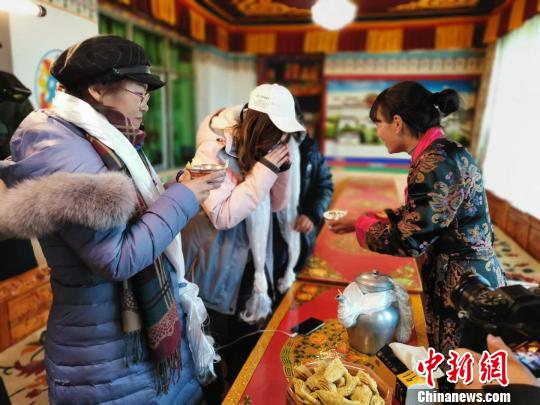 圖為游客進藏旅游體驗當(dāng)?shù)夭刈屣L(fēng)情農(nóng)家樂。資料圖 張偉 攝