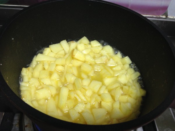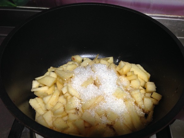 3.倒入蘋果丁、白糖、鹽