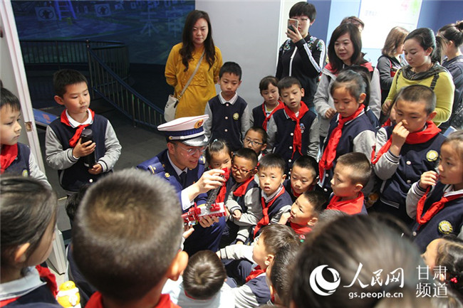甘肅省森林消防總隊指戰(zhàn)員向?qū)W生普及應(yīng)急管理知識。(甘肅省森林消防總隊政治部供圖)