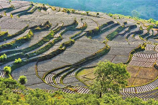 近日,南澗彝族自治縣南澗鎮(zhèn)白云村的烤煙大田移栽基本完成,一片片梯田構(gòu)成了一幅美麗的畫卷。南澗縣今年將進(jìn)一步加大科技種植、科技管理力度,力爭實現(xiàn)烤煙生產(chǎn)提質(zhì)增效。本報通訊員 適志宏 攝