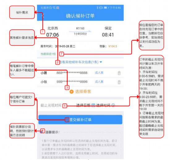 候補購票訂單的提交、兌現(xiàn)時間與網站運營時間一致,為每日的6:00至23:00。開車時間在0:00-5:59的,候補終止時間不晚于開車前兩天的19:00;開車時間在6:00-23:59的,候補終止時間不晚于開車前一天的19:00。