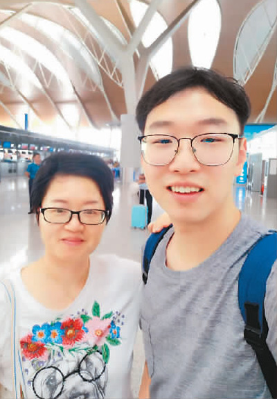 2018年9月底,丁申昊(右)去往德國(guó)之前與母親在浦東機(jī)場(chǎng)的合影。 |