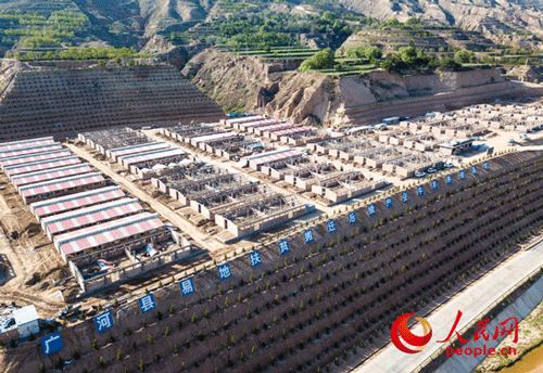 (占地面積約81畝的牛羊養(yǎng)殖基地正在三甲集鎮(zhèn)康家村緊鑼密鼓地建設(shè)中,建成后該基地將有牛舍44棟,羊舍40棟,可容納牛1640頭、羊7800只,成為搬遷戶們養(yǎng)殖致富的新平臺。人民網(wǎng) 張桂貴/航拍)