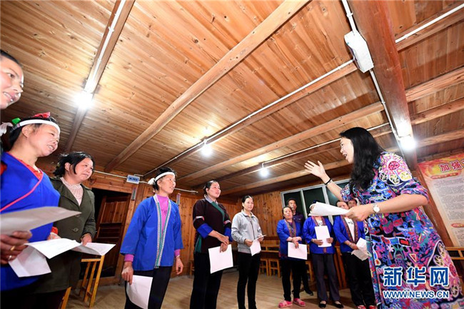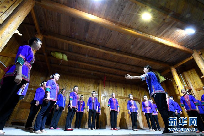 5月27日晚,在廣西柳州市三江侗族自治縣良口鄉(xiāng)燕茶村,吳純娟與村民在戲臺(tái)上排練侗族大歌。 今年42歲的吳純娟是廣西柳州市三江侗族自治縣文化館的一名文藝輔導(dǎo)員。她從小喜歡唱歌,工作后接觸并喜歡上侗族大歌,2005年起專門拜師學(xué)唱侗族大歌。如今,侗族大歌成為她主要輔導(dǎo)和傳承的音樂之一。今年3月中旬,她成為三江縣良口鄉(xiāng)燕茶村一名駐村工作隊(duì)員,侗族大歌是她扶貧的法寶。 燕茶村位于侗鄉(xiāng)大山深處的山腰上,村民們雖然熱愛歌舞,但卻無人會(huì)唱侗族大歌。吳純娟進(jìn)村后,當(dāng)即在村里開設(shè)了侗族大歌免費(fèi)培訓(xùn)班,利用晚上及其他工作之余的時(shí)間教村民唱侗族大歌,受到村民歡迎。如今,燕茶村專門成立“侗族大歌文藝隊(duì)”,隊(duì)員從一開始的20人迅速發(fā)展到33人。村部會(huì)議室、村里的戲臺(tái)、還有山上的千畝茶園……他們的歌聲幾乎傳遍了燕茶村的每個(gè)角落。 “這段時(shí)間,吳老師還利用休息時(shí)間教學(xué)校老師和學(xué)生唱侗族大歌。”燕茶村燕子小學(xué)老師楊雪連說,學(xué)校里從來沒有音樂老師,吳老師在學(xué)校里開班,師生們學(xué)習(xí)熱情也非常高。 吳純娟說:“每首侗族大歌歌唱的都是自然、勞動(dòng)和愛情之美,傳承民族文化的同時(shí),我更希望激發(fā)貧困山區(qū)群眾對(duì)美好生活的向往,提高自信,共同脫貧致富。”據(jù)了解,侗族大歌是侗族地區(qū)一種多聲部、無指揮、無伴奏、自然和聲的原生態(tài)音樂。2005年,侗族大歌被列入我國(guó)第一批非物質(zhì)文化遺產(chǎn)名錄,2009年被列入世界人類非物質(zhì)文化遺產(chǎn)代表作名錄。
