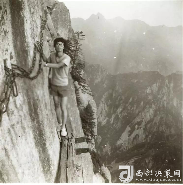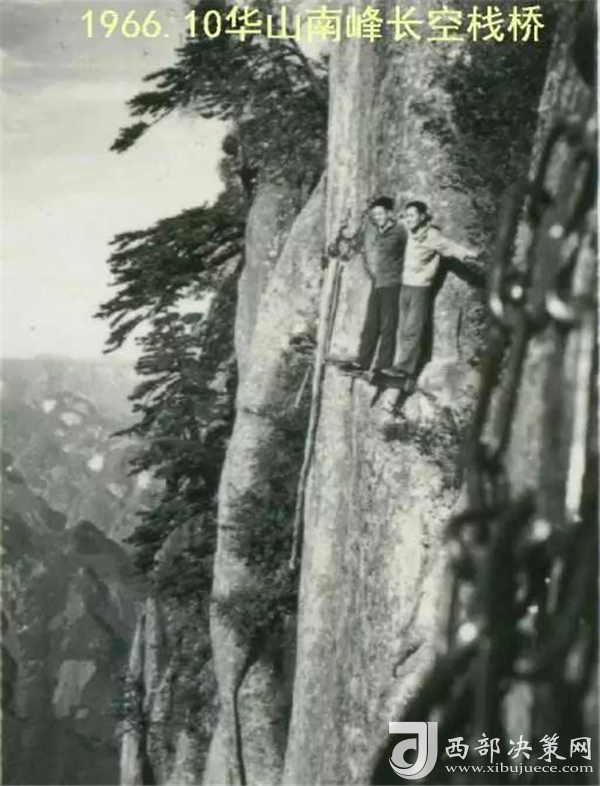 我照相的時(shí)候,一只手抓鐵鏈,一只手做動(dòng)作,身體是緊貼石壁。難得的是當(dāng)年一起去的一個(gè)女生給我照相,在我對面一樣危險(xiǎn),但女俠單手抓鐵鏈,整個(gè)身體外突懸在半空中,另一只手拿相機(jī)找一個(gè)最好角度給我拍照,我都替她擔(dān)心。——摘自網(wǎng)友2003年爬華山的游記