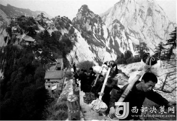 明代“后七子”之一的李攀龍《太華山記》記述:“出南天門向西就是棧道,棧雖有銅柱鐵索攔護(hù),然闊不盈尺。行二十余丈方至盡頭。下折為井,高約三丈,旁出復(fù)為棧……”