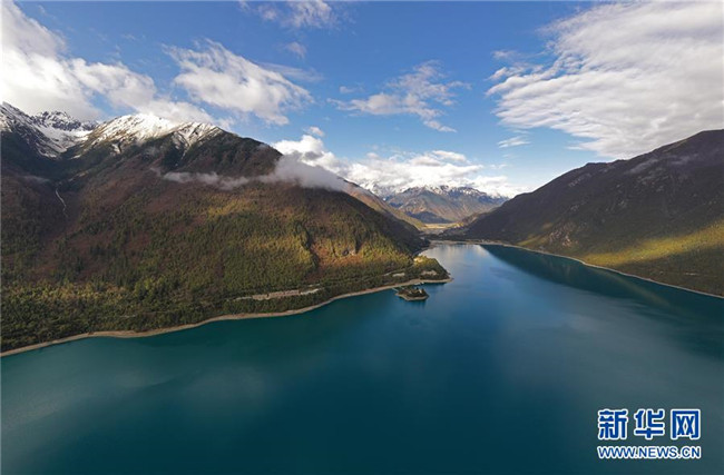 西藏林芝境內的巴松湖(5月2日無人拍攝)。新華社記者 李鑫 攝