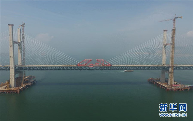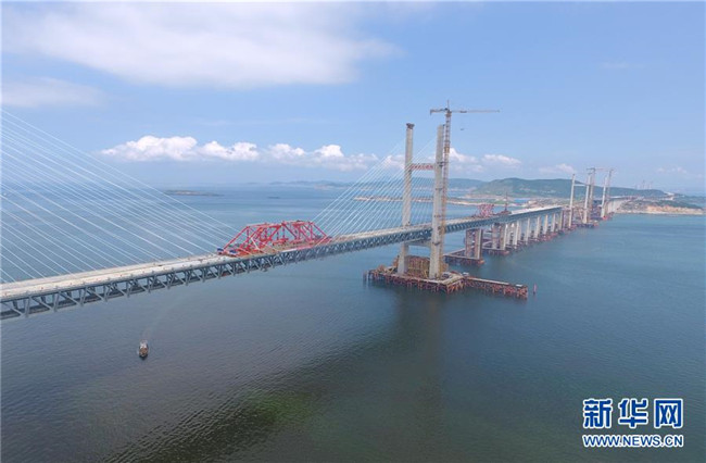 6月5日,福平鐵路平潭海峽公鐵兩用大橋元洪航道橋主橋正式合龍。 新華社記者 林善傳 攝