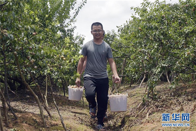 6月11日,游客在欽南區(qū)那麗鎮(zhèn)殿艮村的“扶貧李園”游玩。