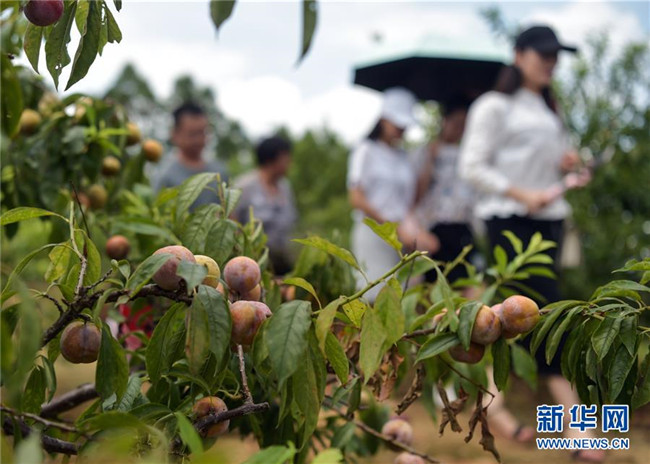 近日,廣西欽州市欽南區(qū)那麗鎮(zhèn)殿艮村種植的三華李進(jìn)入收獲季,吸引游客前來采摘。目前,殿艮村種植的“扶貧李園”共帶動16戶貧困戶實現(xiàn)增收。 新華社記者 張愛林 攝