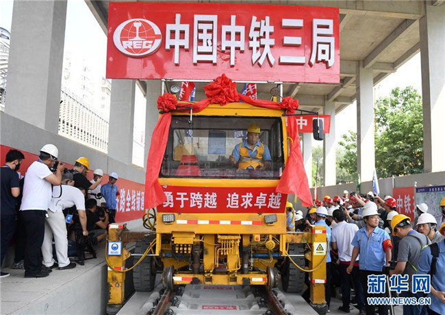 6月12日,在京張高鐵清華園隧道,鋪軌車在進行鋪軌作業(yè)。新華社記者 張晨霖 攝