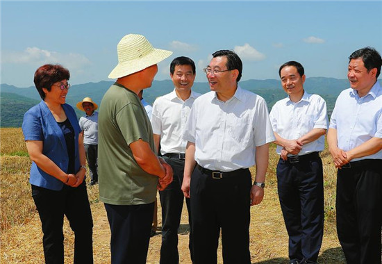 6月13日,省委書記胡和平在千陽縣城關(guān)鎮(zhèn)新民村了解夏收和強(qiáng)農(nóng)惠農(nóng)政策落實(shí)情況。 記者 宋紅梅攝