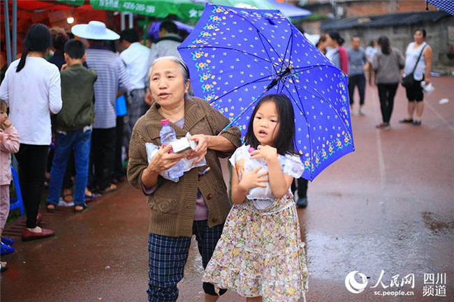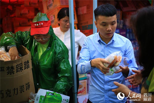 6月19日,宜賓長寧地震后的第二個清晨,安置點(diǎn)群眾領(lǐng)取了免費(fèi)的早餐。(人民網(wǎng) 朱虹 攝)