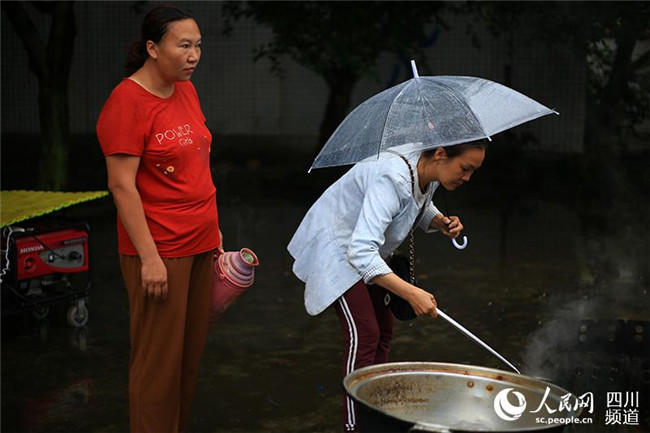 6月19日,宜賓長寧地震后的第二個清晨,安置點(diǎn)正在發(fā)放免費(fèi)早餐。(人民網(wǎng) 朱虹 攝)