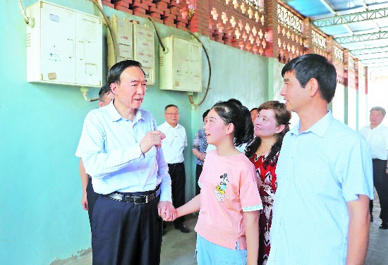 6月18日,新疆維吾爾自治區(qū)黨委書記陳全國到吐魯番市調(diào)研。這是陳全國在吐魯番市高昌區(qū)亞爾鎮(zhèn)英買里村,走訪慰問阿里木·吐爾遜一家,并仔細詢問生產(chǎn)生活、子女就學(xué)等情況。崔志堅 攝