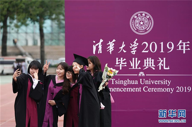 7月7日,清華大學2019年本科畢業(yè)生在畢業(yè)典禮上合影。