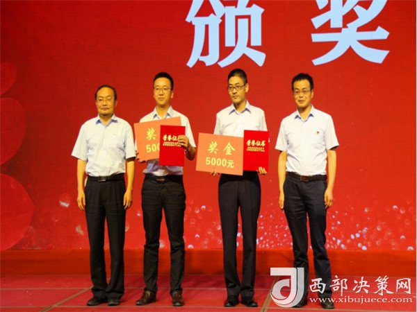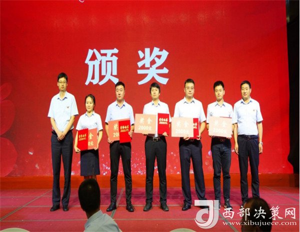 西鳳股份公司副董事長(zhǎng)、總經(jīng)理賈智勇,西鳳集團(tuán)公司黨委副書(shū)記、紀(jì)委書(shū)記劉周虎為受表彰的先進(jìn)個(gè)人頒獎(jiǎng)