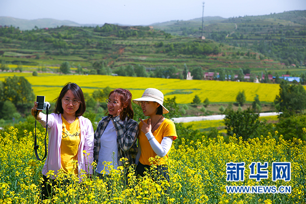 六盤(pán)山下 油菜花裝扮美麗鄉(xiāng)村