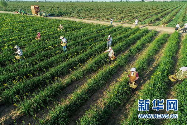 7月4日,紅寺堡區(qū)太陽(yáng)山鎮(zhèn),村民正為采摘黃花菜奔忙。 新華網(wǎng)發(fā)(祁瀛濤 攝)