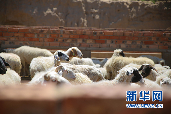 這是鹽池縣王樂(lè)井鄉(xiāng)劉相莊自然村,一戶村民家養(yǎng)殖的灘羊(7月4日拍攝)。 新華網(wǎng) 肖寒 攝
