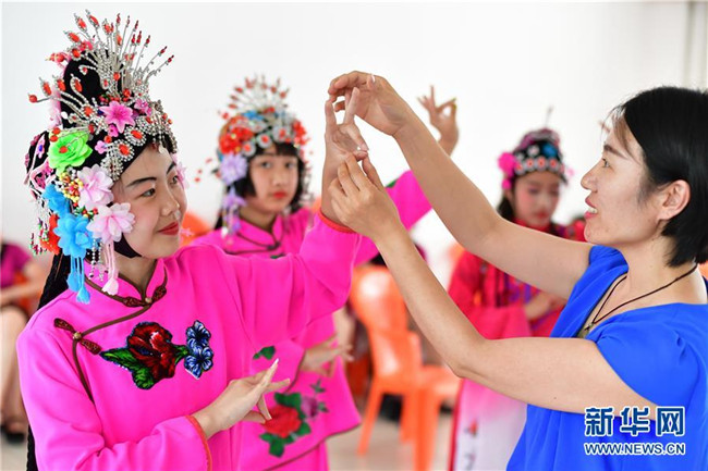 7月16日,小朋友們在灤州市自強里社區(qū)活動室學(xué)習(xí)評劇。新華社記者 牟宇 攝