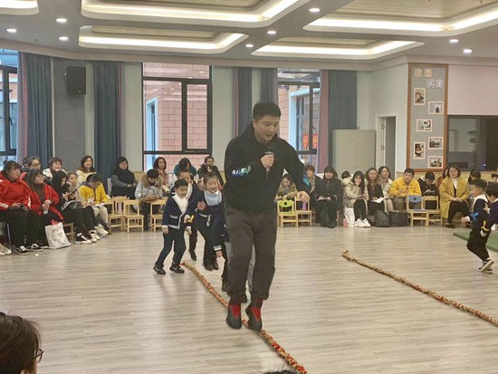 3月29日,浙江省建德市欽堂中心幼兒園教師鄭勇江在執(zhí)教大班健康活動(dòng)公開(kāi)課《趣味運(yùn)動(dòng)會(huì)》。鄭勇江供圖